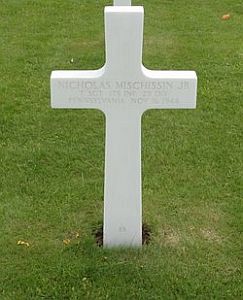 T/Sgt Nicholas Mischissin graduated from Freeland High School with the class of 1936 where he was a basketball star. He was employed at the Essex-Sussec Hotel in Spring Lake, New Jersey and the Hotel Flamingo in Palm Beach, Florida.He enlisted at Wilkes Barre, Pennsylvania on 25 April 1941 and was sent overseas in October 1942.