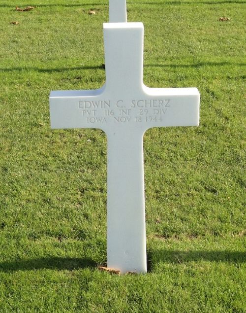 Pvt Edwin C. Scherz enlisted on 5 April 1944 at Camp Dodge, Herrold, Iowa.He joined his unit from Replacement Depot on 25 October 1944.