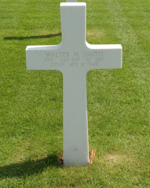 Walter M. Smith graduated from South Cache High School in 1942 and attended Utah State Agriculture College in Logan, Utah for two quarters.Walter Smith enlisted on 1 March 1943 at Fort Douglas, Salt Lake City. He trained in Texas and Camp Fort Meade, Maryland. He was promoted to Sergeant on 1 June 1943 and was accepted for Army Specialized training on 19 February 1944. He was transferred to Air Corps. Walter Smith was sent overseas in January 1945.