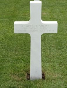 Pvt Clarence Smoak enlisted on 20 December 1943 at Fort Jackson, Columbia, South Carolina and going overseas in August 1944 and joined his unit from a Replacement Depot on 1 October 1944.Source of information: Raf Dyckmans, Terry Hirsch, www.wwiimemorial.com, www.archives.gov - WWII Enlistment Record, www.ancestry.com - Headstone and Interment Record / WWII Draft Cards / 1930/1940 Census, Press and Standard - 9 November 1944
