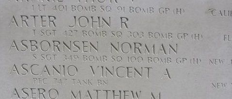 Only the navigator, 2nd Lt Nicholas Demchak survived and was picked up by a German boat. After the war, he stated about S/Sgt Asbornsen: "I believe he was killed or seriously wounded by fighters as a burst of machine-gun fire came quite close to me. And at the angle it seems to me the cockpit was hit also. Directly after that the bail-out call was given".