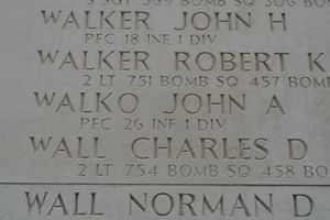 He was killed in action on 20 October 1944, when his unit came under heavy German fire during fighting in Aachen, Germany. In November 1944, the American Graves Registration Command processed a set of remains recovered from the area where Walko was lost. Due to their condition, the remains could not be identified and were interred at the United States Military Cemetery at Henri-Chapelle.