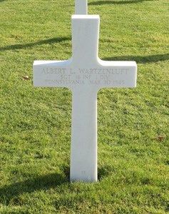 Sgt Albert L. Wartzenluft first buried at Temporary American Military Cemetery Margraten, Netherlands Block UU, Row 5, Grave 110.