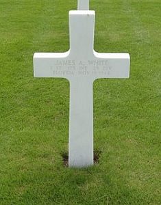 1st Lieutenant James A. White graduated from the University of Florida. In the same exercise in which he received his BA degree, he was awarded his commission from the university ROTC as a second lieutenant in the infantry. He went into active service at once and reported to Camp Wolters, Texas. Later he served at Fort Benning, Georgia, Camp Blanding and Camp Shelby, Mississippi. Early in September 1944 he reported to Fort Meade, Maryland and soon after left for overseas duty.Lt. White was married on 20 June 1943 in Fort Worth, Texas, to Marian Lewis.