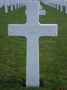 Pvt Kenneth F. Wiblitzhouser Sr. attended Eastern High School in Washington, D.C. and worked at the Bureau of Engraving and Printing.He enlisted at Fort Myer, Virginia on 9 December 1943. He was sent overseas in July 1944.