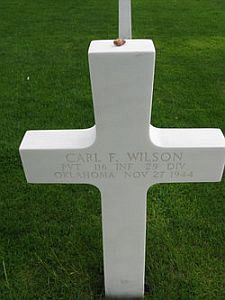 Pvt Carl F. Wilson enlisted at Fort Sill, Oklahoma on 6 April 1944. He joined his unit from a replacement depot on 26 October 1944.