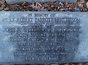 Lt. Robert P. Hutcheson attended Virginia Polytechnic Institute as part of the Class of 1944.He is remembered at the Westview Cemetery in Blacksburg, Montgomery County, Virginia.