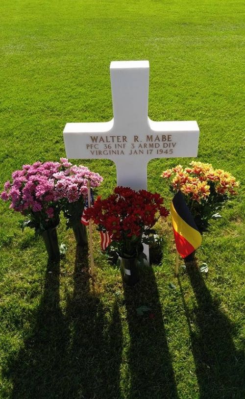 Pfc Walter R. Mabe enlisted at Camp Lee, Virginia on 23 June 1944.He trained at Camp Blanding, Florida before deploying to Europe in late December 1944. Pfc Mabe died as a result of a wound in the neck by a gunshot.