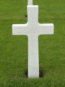 S/Sgt Russell B. Mc Girr enlisted in Manchester, New Hampshire on April 13, 1942.A member of his unit, John B. Cramer, remembered: I was told at that time that the platoon was just outside Schmidt and two German soldiers, displaying a white flag, tried to surrender. A replacement NCO opened fire on them with grease gun and hence around 50 German soldiers waiting to see if the first two made it then started a firefight in which both Miles and Mc Girr were killed.