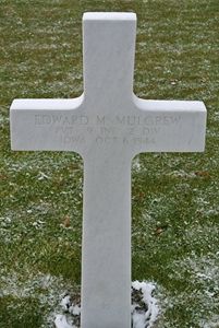 Edward Mulgrew worked in a warehouse before he enlisted at Camp dodge, Iowa on 24 January 1944 and was sent overseas in August 1944.He was reported wounded in action on 5 October 1944 and died the following day.