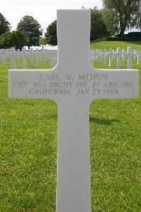 1st Lt Earl V. Morin enlisted in Los Angeles, California on 12 February 1942.Source of information: Peter Schouteten, Terry Hirsch, Carla Mans, WW2-Airborne.us, NARA, WW2memorial, www.ancestry.com - United States World War II Army Enlistment Records / 1920 Census / Headstone and Interment Record / U.S. WWII Draft Cards Young Men