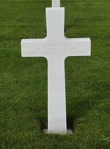 Pfc John P. Sink enlisted at Fort Bragg, North Carolina on 17 January 1941.He died of wounds, sustained schrapnel in the abdomen.