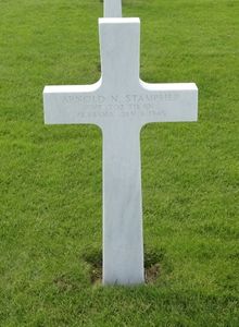 Pvt Arnold N. Stampher entered the service 2 February 1943 at Fort McClellan, Alabama, taking his basic training at Camp Hood, Texas and had been overseas three months,