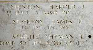 T/Sgt James D. Stephens enlisted on 16 September 1940 at Jackson, Georgia. He died of pneumonia in Germany as Prisoner of War.