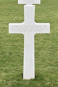 Captain Claude D. Wallace Jr. enlisted upon graduating from the University of Alabama in 1942 and had been overseas eleven months before he was killed.When darkness fell, Wardin was attacked by German tanks. The house, where the command post of I Company was situated, was hit by a granate. Capt Wallace decided that it was better to evacuate and ordered everybody to move to safety. He tried to reach the borders of a little stream when he was hit by small arms fire.