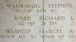 Pfc Ward was last seen guarding German prisoners at a command post in the town. Witnesses from his unit later reported that an enemy artillery shell struck that command post during a fierce German attack on the town. Eventually surviving members of his unit were forces to fall back and his remains were not recovered at that time. After the war, the American Graves Registration Service personnel attempted to associate Pvt Ward with unknown remains recovered from the Hürtgen Forest area, but were not succesful.