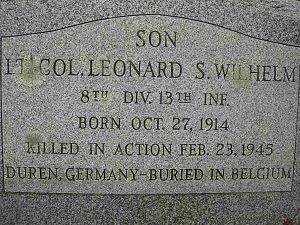 Lt. Col. Leonard S. Wilhelm graduated from Penn State College in 1940. He majored in Forestry.He was rewarded the Distinguished Service Cross posthumously for his actions on the day of his death.