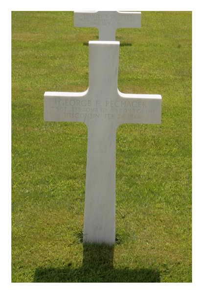Surviving air crew member reports indicate that T/Sgt Pechacek was last seen opening the bomb doors, allowing crew members to bail out. It is believed that he was wounded in the plane by the attacking enemy fighter. He definitely bailed out, but it is believed he was so badly injured that he died after landing.