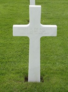 Pvt Albert U. De Angelis enlisted in Camp Upton Yaphank, New York on 29 March 1944.Source of information: Peter Schouteten, Carla Mans, www.wwiimemorial.com, www.archives.gov, www.ancestry.com – WWII Enlistment Record / 1930/1940 Census / U.S. WWII Draft Cards Young Men