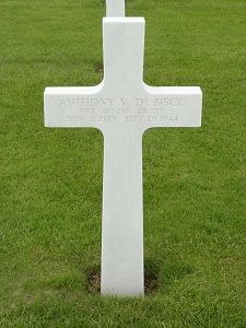 Pvt Anthony V. De Bisco was employed by the General Instrument Company.He enlisted in Newark, New Jersey on 30 August 1943 and was sent overseas in July 1944.
