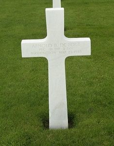 Pfc Arnold B. De Bolt enlisted in Spokane, Washington on 12 February 1943. He worked as a clerk before he enlisted.Source of information: Peter Schouteten, Raf Dyckmans, Carla Mans, www.wwiimemorial.com, www.archives.gov, www.ancestry.com – WWII Enlistment Record / 1940 Census / U.S. WWII Draft Cards Young Men