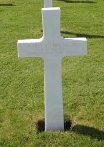 Pvt Harry G. Deger Jr. enlisted in New Cumberland, Pennsylvania on 20 June 1944. He attended high school for 2 years and was a chauffeur before he enlisted. Harry attended Phoenixville Schools, but left high school to work in his father’s milk delivery business.Pvt Harry G. Deger Jr. first buried at Temporary American Military Cemetery Henri-Chapelle, Belgium Block J-4, Row 6, Grave 120.