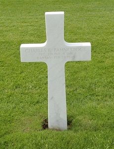 Pfc Charles E. Fahnestock enlisted in Fort Levenworth, Kansas on 19 July 1944.Source of information: Peter Schouteten, Carla Mans, www.wwiimemorial.com, www.ancestry.com - WWII Enlistment Record / U.S. WWII Draft Cards Young Men / Headstone and Interment Record / Missouri Marriage Records / 1930 Census, www.archives.gov