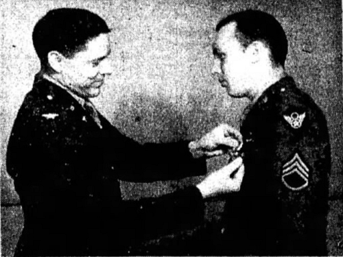 The bottom picture shows Sgt Helmke receiving one of Air Medals.