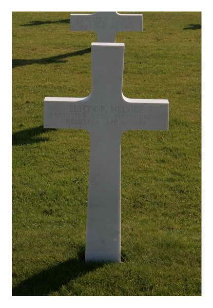 S/Sgt Helmke enlisted in 1942 and had been stationed in England since 1 October 1943.Eyewitness reports from returning crewmen of other planes (Lt Ambrose, Lt Kamenitsa and Lt Wienheimer) stated that the Ellinger ship received a direct hit from AA guns at 15:58 hours on route back from the target and the flak had struck the aircraft just behind the wing section with the plane starting down and disintegrating before striking the ground and no chutes were seen. The reported downing would place this aircraft roughly over Belgium territory. No other accounts of any type were available. Sgt Hasenfratz later recalled that after flak hit his aircraft, the front section exploded into flames and the tail section spun out of control toward the ground. He and two other crewmembers were in the tail section as it plunged 18,000 feet to the ground. Sgt Hasenfratz was the only survivor.