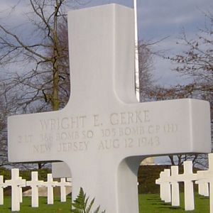 Wright E. Gerke graduated from Merchantville High School in 1938 and attended Drexel Institute.He joined the Air Corps of the Regular Army in Camden, New Jersey on 9 July 1941.