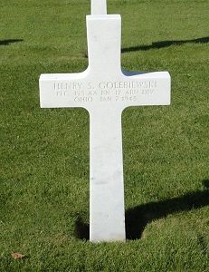 Pfc Henry S. Golebiewski graduated from John Adams High School in 1942 and was employed at the Aluminum Company of America (ALCOA).He enlisted in Cleveland, Ohio on 8 April 1943 and was sent overseas in August 1944.