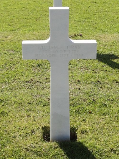 1st Sgt William E. Gray was taken prisoner in the vicinity of Dinant, Belgium on 6 September 1944 and died of wounds a day later. The exact location is not known.He was first buried at the Temporary American Military Cemetery Ardennes, Belgium.