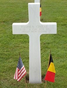 A friend of his brother, Col William Greear, wrote concerning the circumstances of his death: "The attack in which Ralph was killed began early in the morning and had progressed well against stiff German resistance. About 2 p.m. as his platoon after sustaining some casualties reached a small thick wood, an enemy rifle shot came very close to Ralph. Without faltering, he shook his head, looked back toward his platoon, smiled and encouraged them onward. Whitin a minute (three eyewitnesses told me) a second shot struck him and killed him instantly. He fell forward and never moved. His platoon continued forward saddened and enraged by his loss. They drove into the wood and killed the Germans who were occupying a machine gun nest under the branches of a fallen tree. Ralph's body was recovered by his platoon and later buried with honor and services by a Protestant chaplain in an American cemetery in Belgium."
