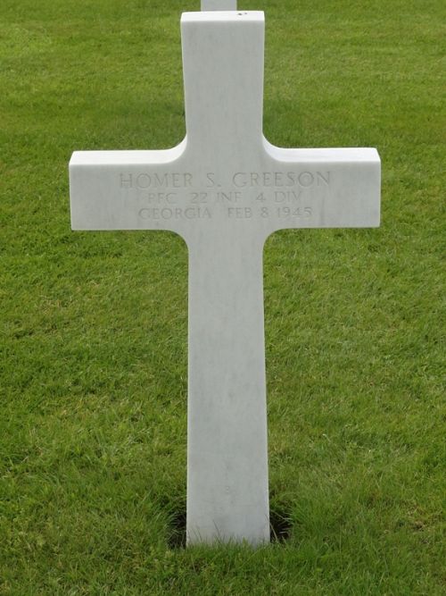 Pfc Homer S. Greeson worked as a clerk before he enlisted at Fort McPherson, Atlanta, Georgia on 10 May 1944.He was first buried at the Temporary American Military Cemetery of Foy, Belgium.