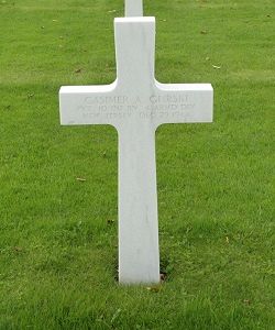 Pvt Casimer A. Gurski was first buried at the Temporary American Military Cemetery of Foy, Belgium.Source of information: Peter Schouteten, Astrid van Erp, Carla Mans, www.abmc.gov, www.wwiimemorial.com, www.ancestry.com - Headstone and Interment Record / Family Tree / U.S. WWII Draft Cards Young Men