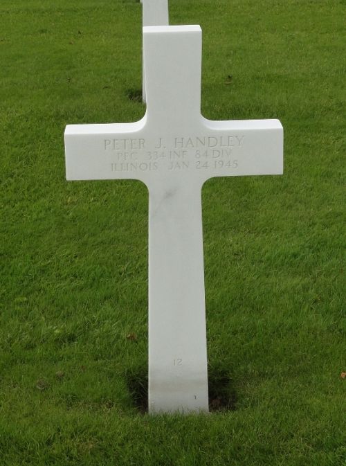 Pfc Peter J. Handley enlisted in Minneapolis, Minnesota on 15 December 1942.Source of information: André Koch, Carla Mans, www.abmc.gov, www.wwiimemorial.com, www.archives.gov – WWII Enlistment Record, www.ancestry.com - Headstone and Interment Record / U.S. WWII Draft Cards Young Men