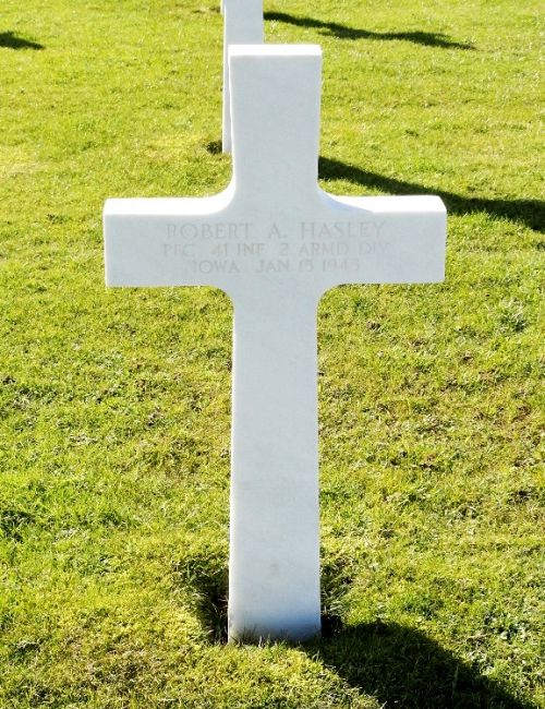 Pfc Robert A. Hasley graduated from St. Patrick’s High School. He worked at Quaker.He enlisted at Camp Dodge, Iowa on 13 January 1943.