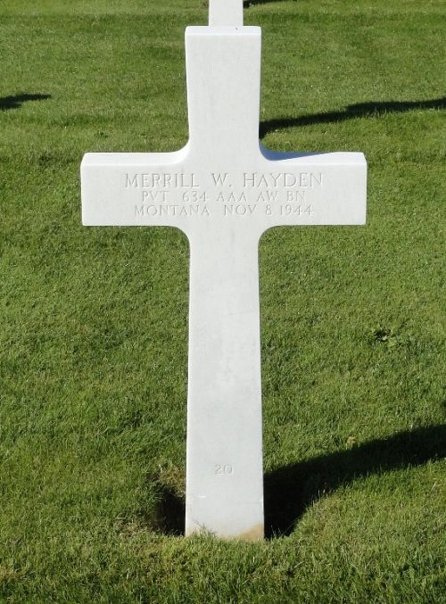 Pvt Merrill W. Hayden enlisted in Missoula, Montana on 19 April 1942.Source of information: Leo Minne, Carla Mans, www.abmc.gov, www.archives.gov - WWII Enlistment Record, www.ancestry.com - 1910/1920 Census / Headstone and Interment Record / Roof German Shotwell Price Family Tree / U.S. WWII Draft Cards Young Men