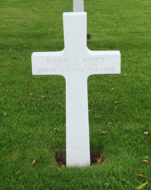 Pfc Robert E. Henry worked as a coppersmith before he enlisted at Fort Bragg, North Carolina on 28 June 1944.Pfc Robert E. Henry was first buried at the Temporary American Military Cemetery of Foy, Belgium.