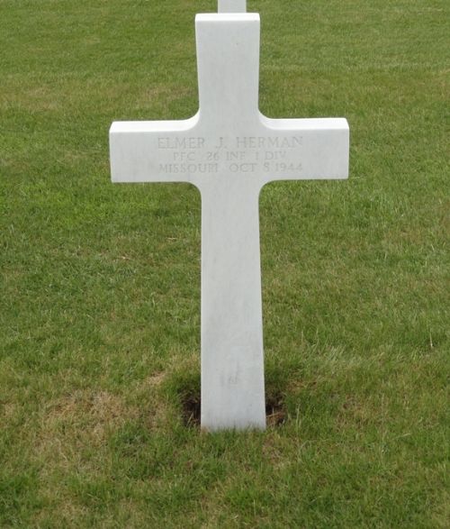 Pfc Elmer J. Herman enlisted at Jefferson Barracks, Missouri on 20 November 1942.He worked on a farm before he enlisted.