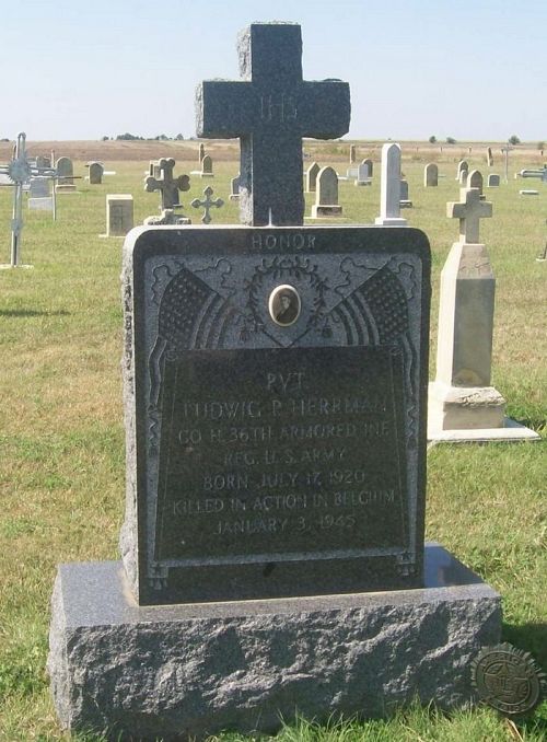 Pvt Herrman is remembered at Saint Joseph Cemetery in Liebenthal, Rush County, Kansas with a memorial marker.