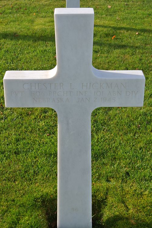 Pvt Chester L. Hickman was first buried at Temporary American Military Cemetery of Foy, Belgium.