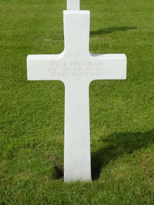 Pvt Paul Hickman enlisted in Dallas, Texas on 21 August 1944.Source of information: Peter Schouteten, Astrid van Erp, www.abmc.gov, www.wwiimemorial.com, www.archives.gov - WWII Enlistment Record, www.ancestry.com - U.S. Headstone and Interment Records / Wayne Lackey Family Tree / 1930 Census / New Mexico World War II Records, www.myheritage.nl - Morning Aalanche