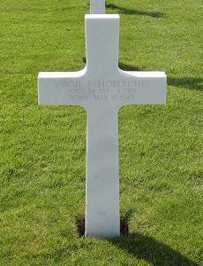 Pfc. Virgil R. Hoelscher, enlisted on 25 April 1942, and trained to become a military policeman at Fort George Wright, Washington and at Mountain Home, Idaho. Later he was transferred to the infantry and trained at Camp Howze, Texas. He was overseas for about a month.Source of information: Astrid van Erp, Carla Mans, www.wwiimemorial.com, www.ancestry.com - Family Tree / U.S. WWII Draft Cards Young Men, www.newspapers.com - The Muscatine Journal and News-Tribune