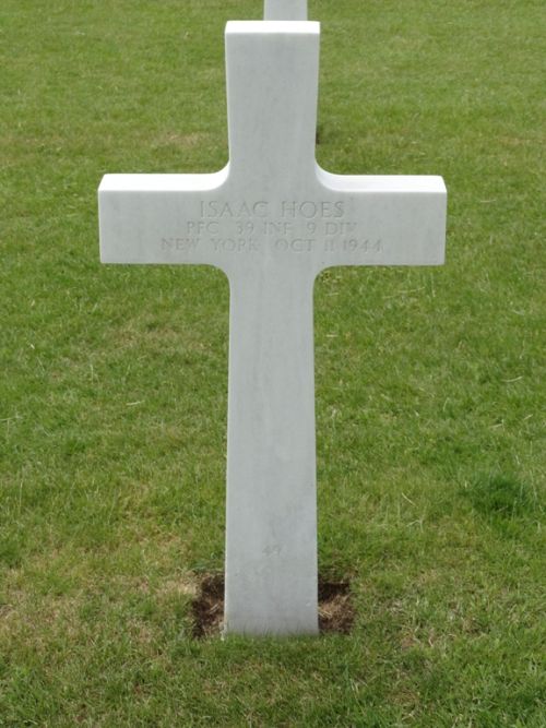 Pfc Isaac Hoes worked on a filling station before he enlisted in Albany, New York on 11 June 1943.Source of information: Peter Schouteten, Carla Mans, www.abmc.gov, www.archives.gov - WWII Enlistment Record, www.ancestry.com - Headstone and Interment Record / 1930 Census / U.S. WWII Draft Cards Young Men, http://9thinfantrydivision.net