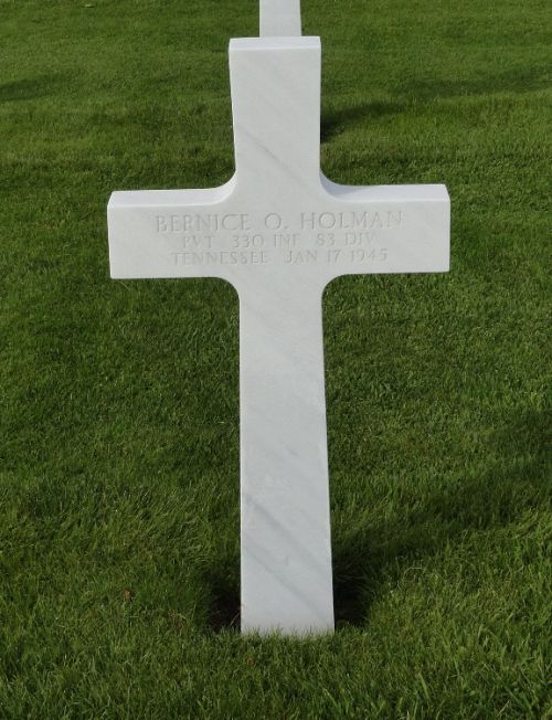 Pvt Bernice O. Holman was an attendant at a filling station before he enlisted at Fort Oglethorpe, Georgia on 25 March 1943.He was sent overseas in May 1944. He joined his unit from the 92nd Replacement Battalion on 21 December 1944.