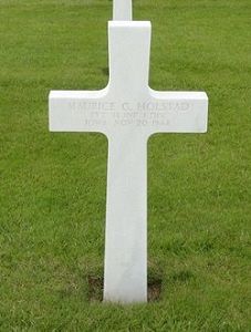 Pvt Maurice G. Holstad enlisted at Camp Dodge Herrold, Iowa on 28 March 1944. He attended high school for 1 year and was a barber before he enlisted.His mother died when he was less than 2 years old and he was reared by his grandparents, Mr. and Mrs. G. O. Holstad of Northwood. His father died about 25 years ago.
