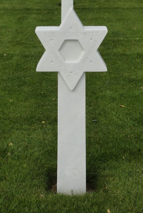 Pfc Sol Horowitz enlisted at Fort Dix, New Jersey on 17 January 1944.Source of information: Peter Schouteten, Richard Blunk, www.abmc.gov, www.findagrave.com - James L. Cooper, www.wwiimemorial.com, www.archives.gov - WWII Enlistment Record, www.ancestry.com - U.S., Headstone and Interment Records for U.S. Military Cemeteries on Foreign Soil / U.S., WWII Jewish Servicemen Cards