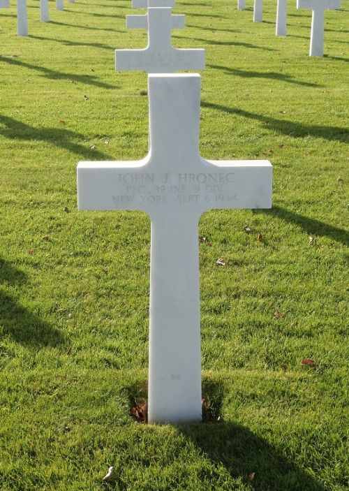 Pfc John J. Hronec was a architect before he enlisted in New York City, New York on 22 January 1941.He was first buried at the Temporary American Military Cemetery of Fosse, Belgium.