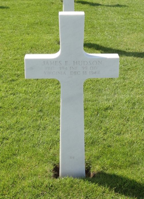 Pfc James E. Hudson was a sales clerk before he enlisted at Fort George G. Meade, Maryland on 23 March 1944.Source of information: Peter Schouteten, www.wwiimemorial.com, www.archives.gov – WWII Enlistment Record, www.ancestry.com - Headstone and Interment Record / Family Tree / Virginia Birth Index
